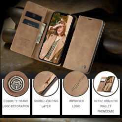 Read More CaseMe iPhone 16 Pro Magnetic Wallet Case – Vintage Leather Flip Cover with 2 Card Holders, Cash Slot & Stand Function