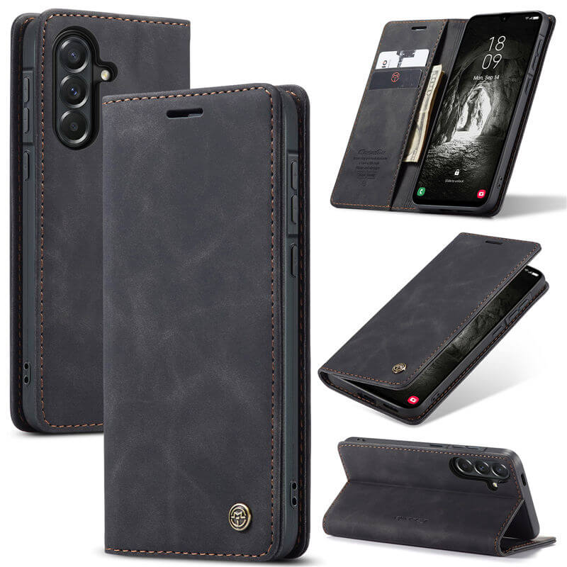 This CaseMe Samsung Galaxy A57 Wallet Case features a simple retro design and a secure grip. Crafted from premium vintage-style PU leather, it delivers a smooth, stain-resistant finish with reliable durability. Designed with 2 card slots, 1 cash pocket, and an adjustable foldable kickstand, it's ideal for daily use and hands-free viewing. A secure magnetic closure keeps your phone and essentials safe, while the front cutout allows calls with the case closed.